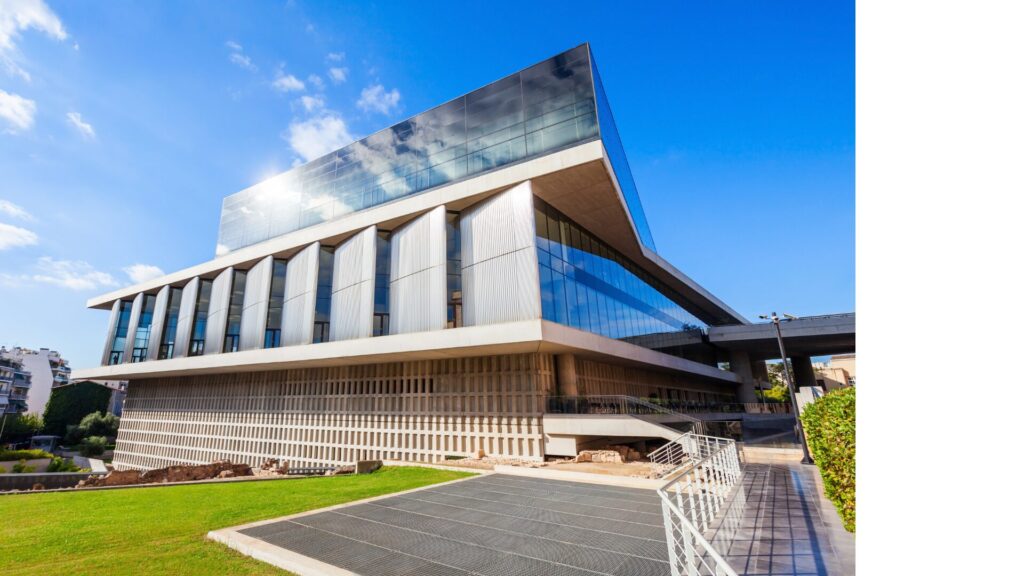 アクロポリスの麓に位置するアクロポリス博物館は、遺跡から発掘された彫刻や遺物を数多く展示しており、訪問者に古代ギリシャの生活や信仰をわかりやすく伝えます。特に屋上テラスからはアクロポリス遺跡を見渡せ、その壮観な眺めは必見です。