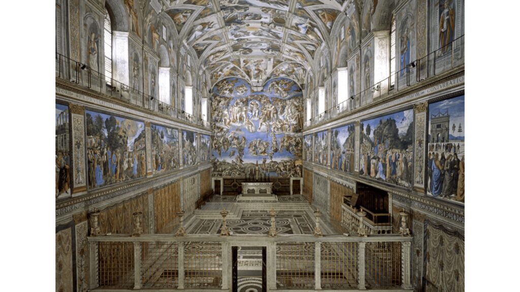 巨大な天井画や「最後の審判」は、ミケランジェロが何年もかけて一人で仕上げた作品です。