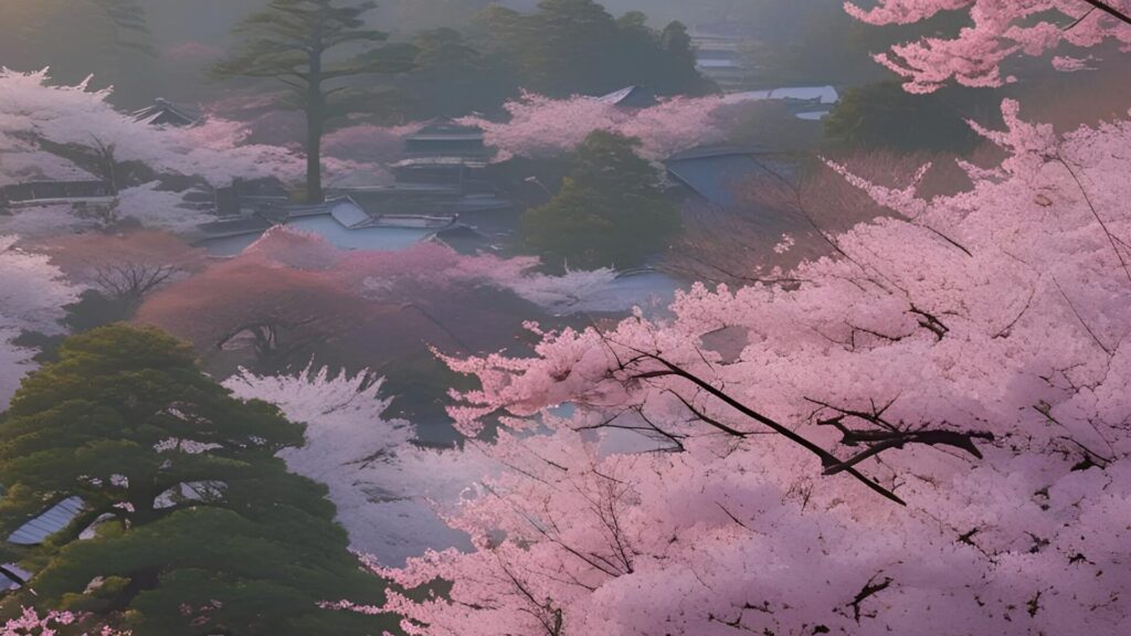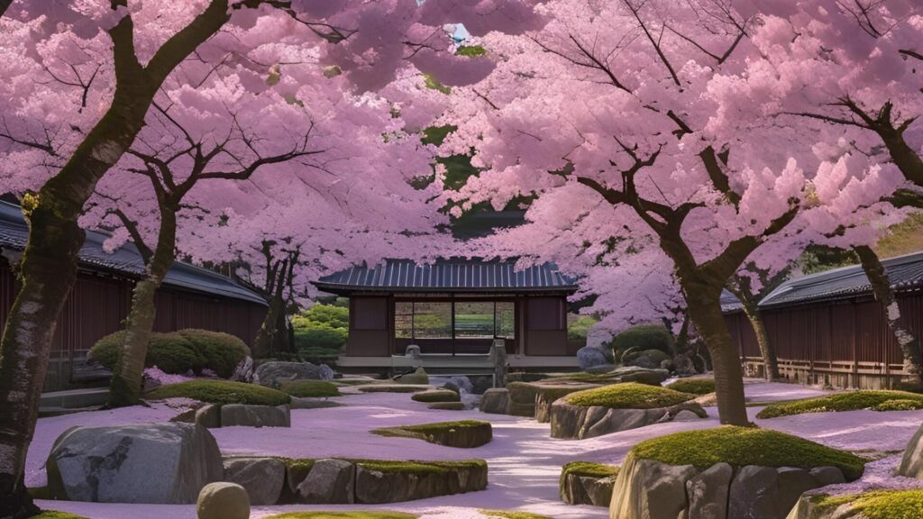 祇王寺の周辺では、苔と桜が織りなす静謐な景色が訪れる人の心を穏やかに包み込みます。嵯峨野の奥にひっそりと佇む祇王寺は、苔庭で有名な小さな寺院です。春になると、桜の淡いピンク色が苔の緑に映え、まるで絵画のような景色が庭全体に広がります。石畳の道を歩くと、苔の上に舞い落ちた桜の花びらがまるで緑の絨毯に散りばめられた宝石のように輝きます。竹垣や小さな灯籠と相まって、苔と桜の色彩が絶妙な調和を見せ、どの角度から見ても静かで深い趣を感じられます。訪れる人は、苔の柔らかさと桜の儚さに心を奪われ、時間を忘れて庭を歩きたくなるでしょう。苔と桜が織り成す祇王寺の庭は、自然の美と静けさを同時に味わえる特別な場所で、春の訪れを静かに楽しむには最適のスポットです