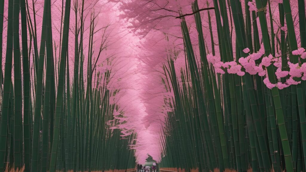 竹林と桜のコラボ景色
