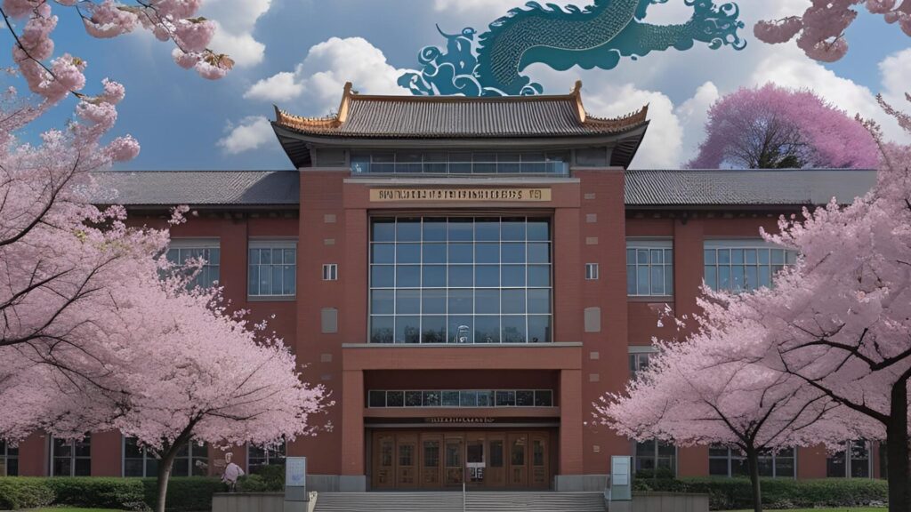 法堂前の桜と雲龍図
