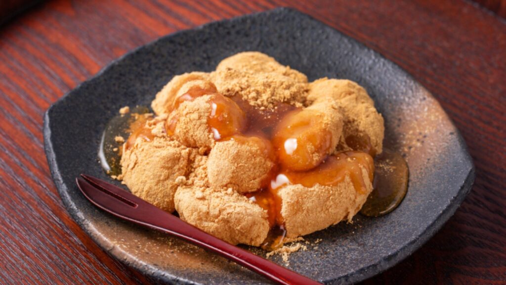 京都嵐山の名物であるいもぼうは、さつまいもと干し湯葉をじっくり甘辛く炊き上げた伝統料理です。小分けで販売されているものは、手軽に歩きながら楽しむことができます。ほくほくのさつまいもとしっとりとした湯葉の組み合わせは絶妙で、一度食べると忘れられない味わいです。見た目も上品で、竹林や庭園の緑の中で食べると、食文化と自然が一体となった体験を感じられます。