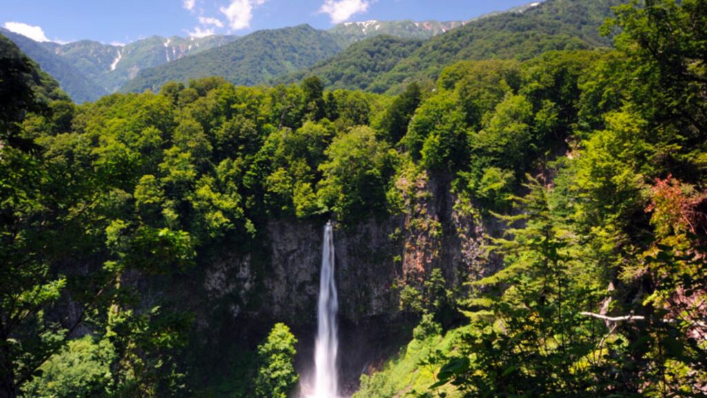 「日本の滝百選」に選ばれた名瀑。落差72mのスケールで白布を垂らしたように流れる水は迫力満点。周囲には遊歩道が整備され、春の新緑、夏の涼、秋の紅葉、冬の氷瀑と季節ごとに姿を変える。滝壺付近ではマイナスイオンを全身で感じられ、都会では味わえない爽快感。ドライブで白川郷から車で20分ほど、散策を兼ねて立ち寄るのに最適。